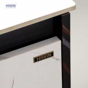 Bộ tủ chậu lavabo Hiwin YS-005 được xử lý hoa văn giả đá Laurent màu vàng đen sang trọng. Phần mặt cửa tủ bao gồm 2 cánh đều có hoa văn đá tự nhiên nhiên màu trắng. Thiết kế 2 cánh tủ theo nguyên tắc bất đối xứng, một cánh lớn bên trái, một cánh nhỏ bên phải đã quy tắc truyền thống, tạo nên sự mới mẻ hiện đại.