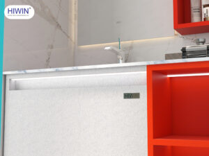 Bộ tủ chậu Hiwin YS-2608 không chỉ chú trọng đến thiết kế và chất liệu, mà còn đặc biệt quan tâm đến từng chi tiết nhỏ nhất, trong đó có phụ kiện ray trượt giảm chấn. Ray trượt được lắp dưới đáy ngăn kéo mang lại tính thẩm mỹ, đồng thời tăng khả năng chịu lực. Bề mặt của ray trượt được phun lớp chồng gỉ, điều này đặc biệt quan trọng trong môi trường phòng tắm, nơi độ ẩm thường xuyên cao