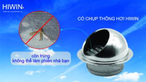 Chụp thông hơi với tác dụng chính là thoát hơi, thoát mùi ra ngoài, cân bằng áp suất khí giữa trong nhà và ngoài trời. Các mẫu cũ chỉ quan tâm đến việc này mà không để ý việc côn trùng như: gián, muỗi có thể bò vào. Hiwin đã trang bị thêm lưới chắn để ngăn côn trùng như: gián, muỗi, bọ, … chui vào qua đường ống nhựa