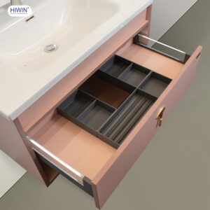 Tủ lavabo Hiwin YP-1479 được chăm chút tỉ mỉ đến từng chi tiết, đặc biệt là hệ thống phụ kiện cao cấp, mang đến trải nghiệm sử dụng tinh tế và độ bền ấn tượng. Các ngăn kéo được trang bị ray trượt giảm chấn ẩn mình dưới đáy, một giải pháp vừa thẩm mỹ vừa thông minh.