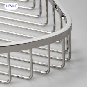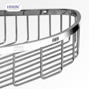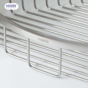 Các thanh nan kim loại được bố trí song song, đều nhau, tạo sự thoáng khí và hỗ trợ thoát nước nhanh. Đặc biệt, khoảng cách nan được tính toán hợp lý để vừa giữ chắc vật dụng bên trong, vừa ngăn không cho xà phòng hay chai lọ bị rơi ra ngoài. Điểm nhấn tinh tế nằm ở viền trước của giỏ, được gia công bo tròn mượt mà cùng logo thương hiệu HIWIN khắc nổi bật.