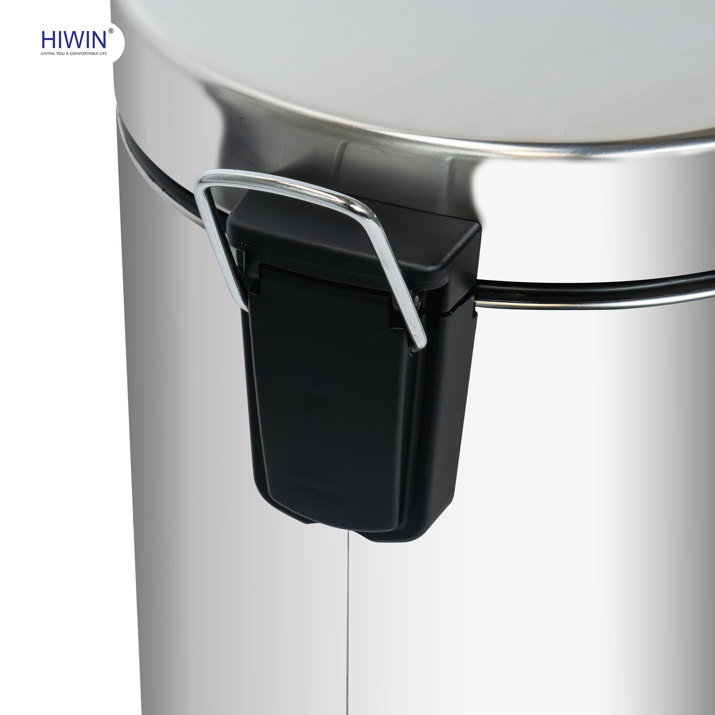 Bên trong là thùng đựng rác bằng nhựa cao cấp, có trọng lượng nhẹ, dễ dàng nhấc ra để vệ sinh hoặc thay túi rác. Lớp nhựa này còn giúp hạn chế bám bẩn trực tiếp lên lớp inox bên ngoài, tăng tuổi thọ sản phẩm và đảm bảo quá trình sử dụng luôn gọn gàng, vệ sinh. Sự kết hợp giữa inox 304 và nhựa bền chắc mang đến cho thùng rác Hiwin Y-5018-5L độ hoàn thiện cao, tính tiện ích và độ bền vượt trội theo thời gian.