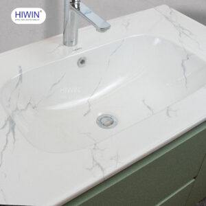 Điểm nhấn sang trọng và hiện đại của tủ nhựa treo tường Hiwin YP-1475 nằm ở chiếc lavabo sứ liền khối, được chế tác tinh xảo với hoa văn vân đá tự nhiên đầy cuốn hút. Thiết kế liền mạch không chỉ tạo nên vẻ đẹp liền lạc, tinh tế mà còn hạn chế tối đa các khe nối, ngăn ngừa sự tích tụ của bụi bẩn và vi khuẩn, đảm bảo vệ sinh tối ưu. Chất liệu sứ cao cấp được lựa chọn không chỉ mang đến bề mặt sáng bóng, dễ dàng lau chùi mà còn có khả năng chống bám bẩn hiệu quả, giúp duy trì vẻ đẹp như mới theo thời gian.