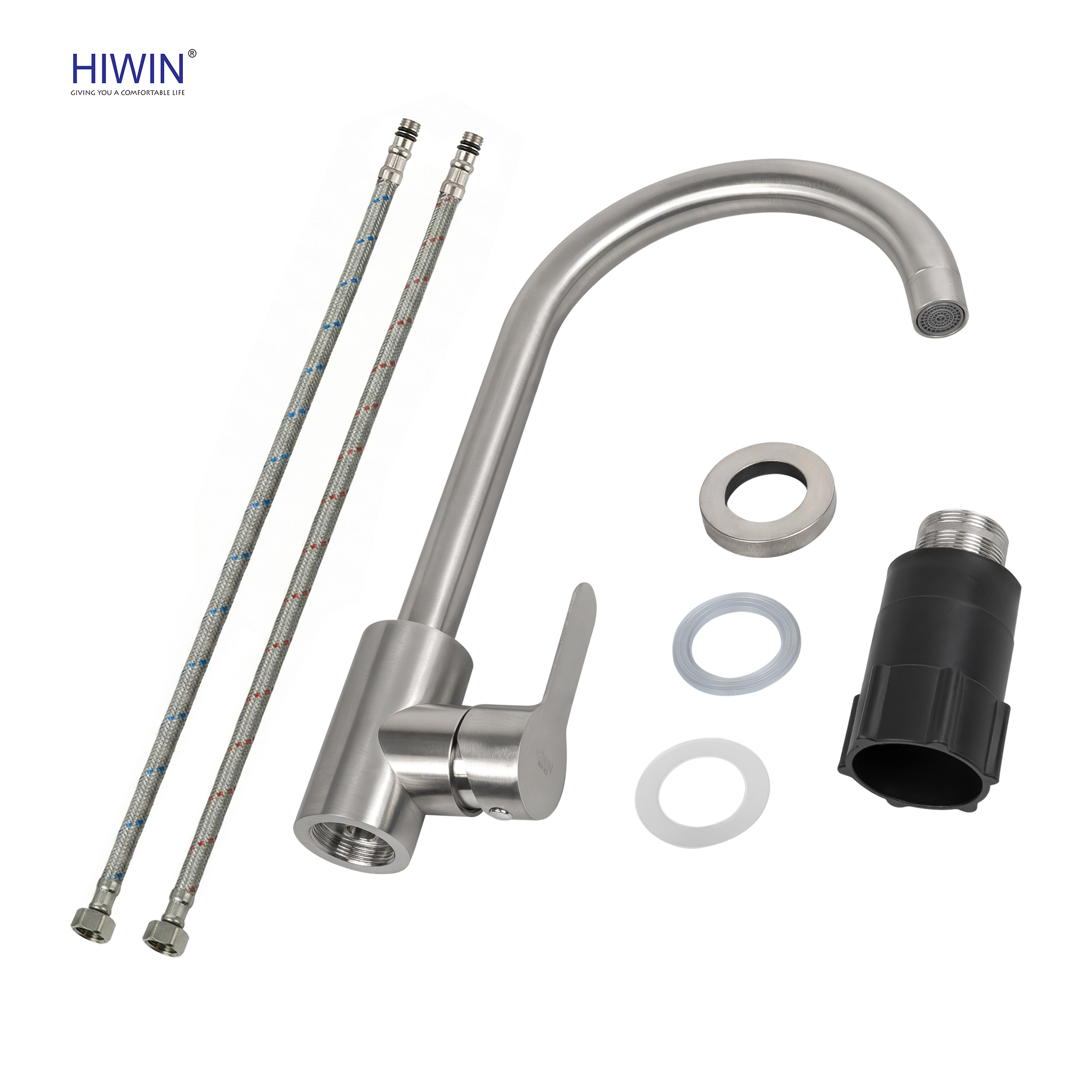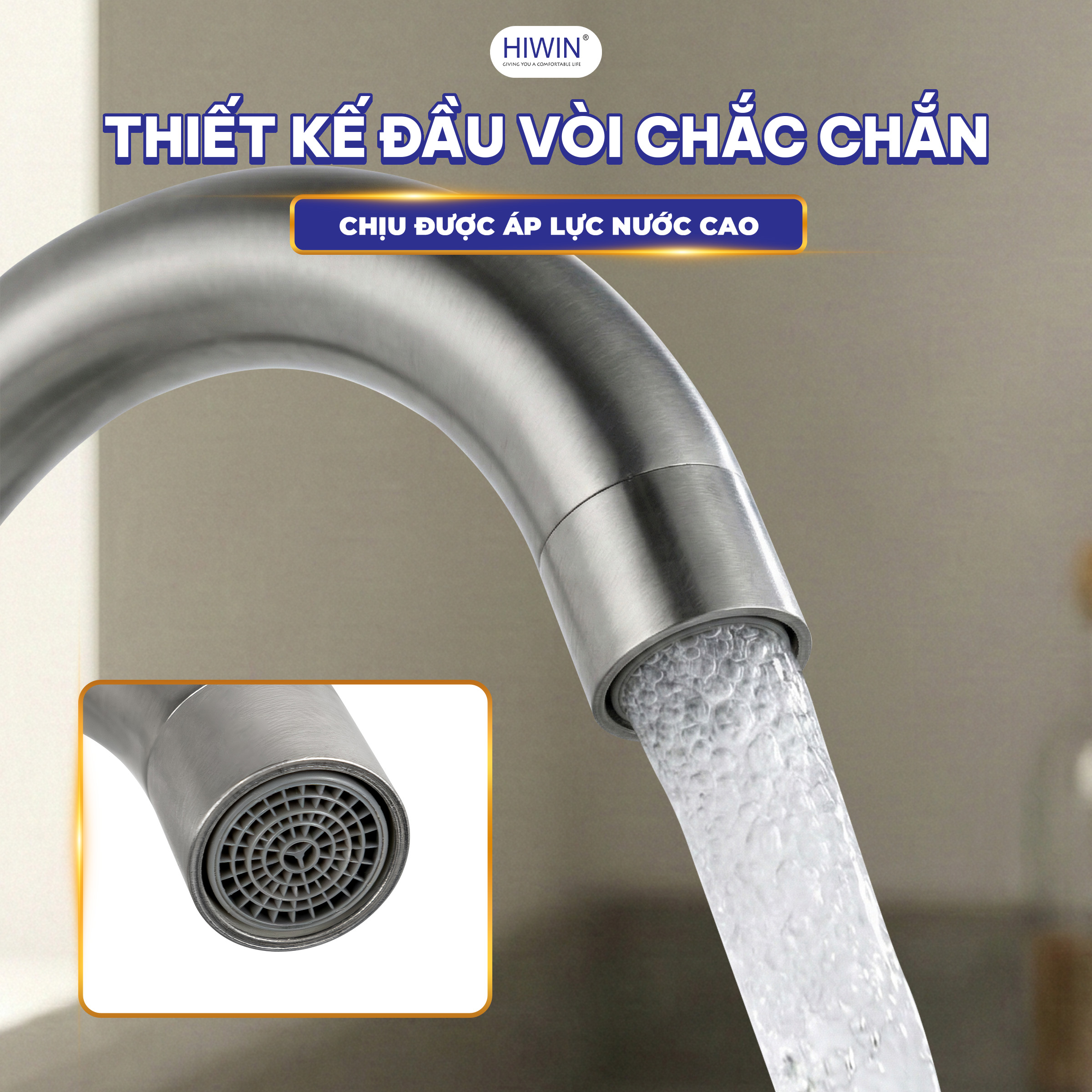 Vòi rửa bát nóng lạnh Hiwin KF-101S inox 304 gắn chậu, xoay 360 độ tiện lợi